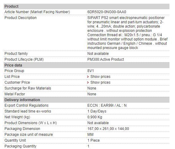 | Alternate Part Number | 6DR5020-0NG00-0AA0 |