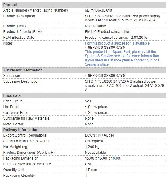 6EP1436-3BA10 6EP1 436-3BA10 Siemens Power Supply Images |