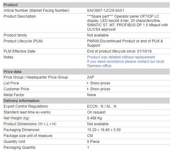 | Alternate Part Number | 6AV3607-1JC20-0AX1 |