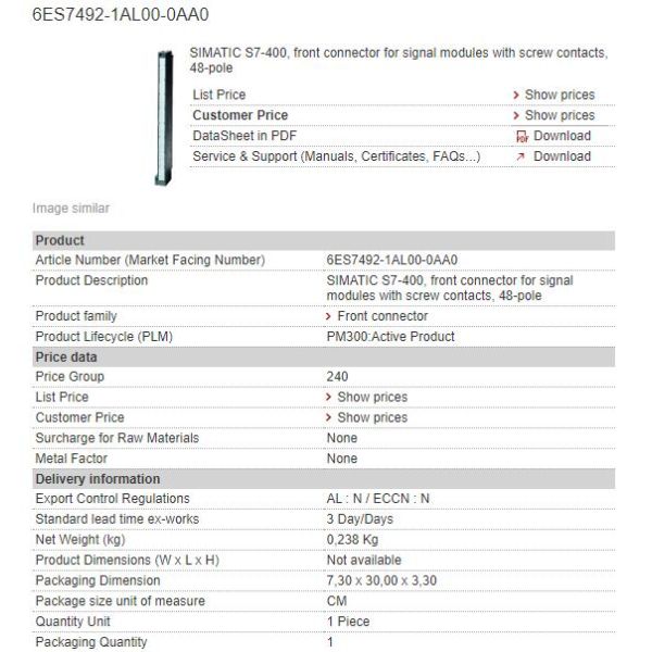 | Alternate Part Number | 6ES7492-1AL00-0AA0 |
