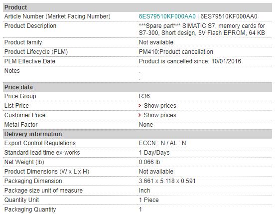 6ES7951-0KF00-0AA0 6ES7 951-0KF00-0AA0 Siemens Memory Card Images |