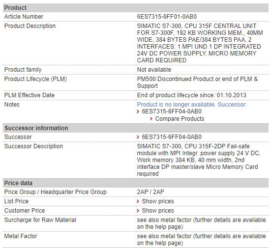 | Alternate Part Number | 6ES7315-6FF01-0AB0 |