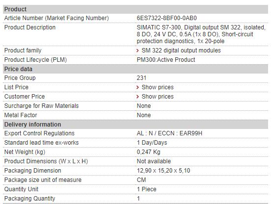 | Part Number | 6ES7322-8BF00-0AB0 |