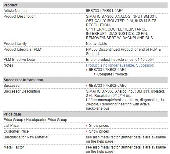 | Alternate Part Number | 6ES7331-7KB01-0AB0 |