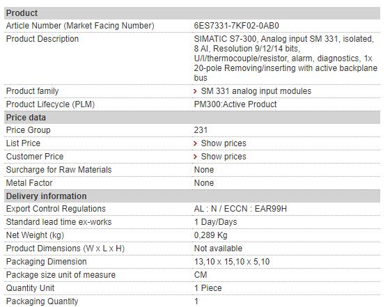 | Alternate Part Number | 6ES7331-7KF02-0AB0 |