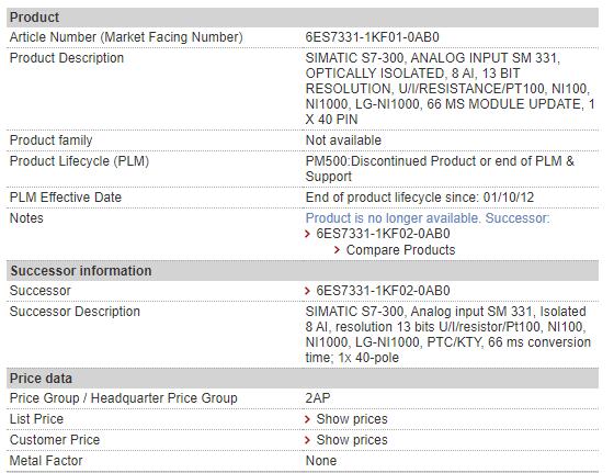 | Alternate Part Number | 6ES7331-1KF01-0AB0 |