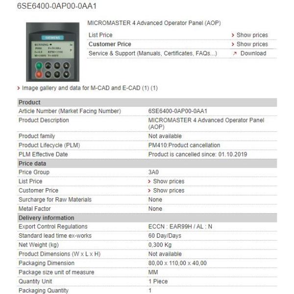 | Part Number | 6SE6400-0AP00-0AA1 |