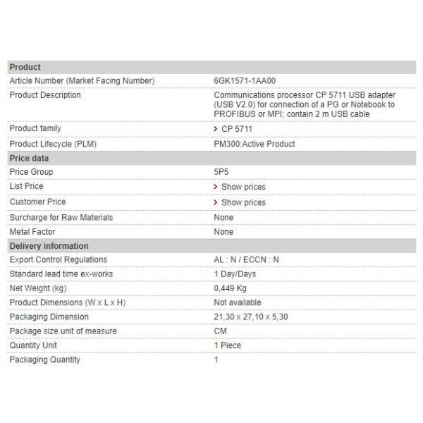 6GK1571-1AA00 Siemens CP5711 Communication Processor Images |