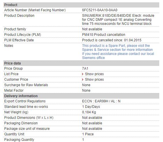 | Part Number | 6FC5211-0AA10-0AA0 |